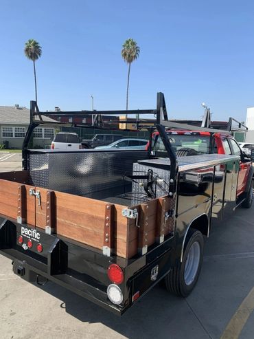Can't decide between a Utility Body or a Stakebed? The Combo body is the perfect combination. In the front portion, you have the Utility Body....Compartments with shelving to store what needs to be locked. In the rear, you get a 36" long work platform with stake gates (length varies with body size). The best of both worlds!